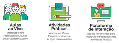 Aulas: segundas e quartas-feiras, 19h00 às 22h40, horário de Brasília.