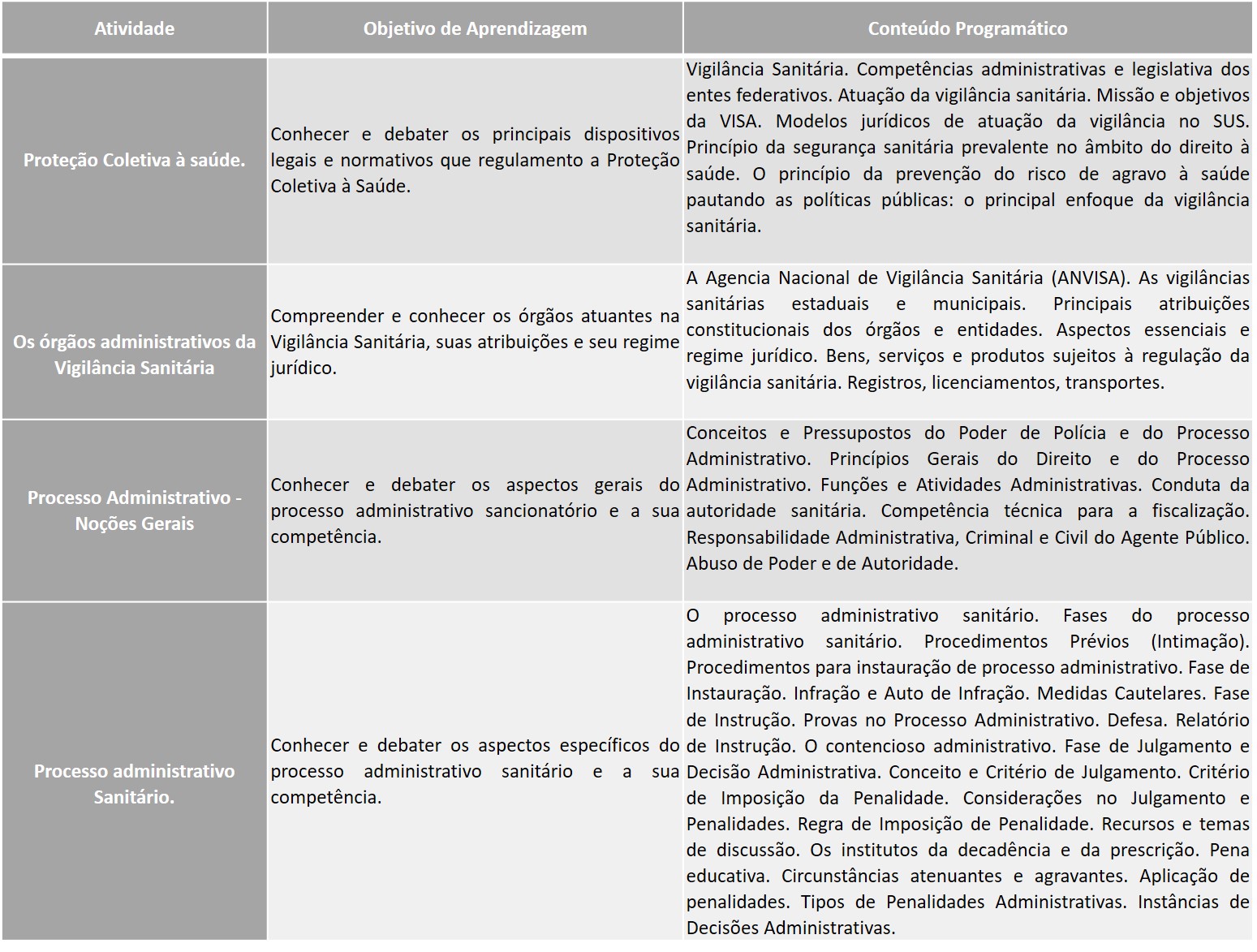 1. Desenvolver temas afetos à vigilância sanitária, sua regulação e atos da autoridade sanitária de orientação, condicionamentos e intervenção.