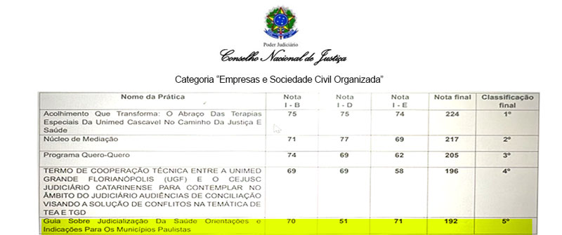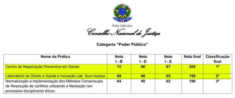 Para maiores informações sobre a premiação acesse o site Premio Justiça e Saúde.