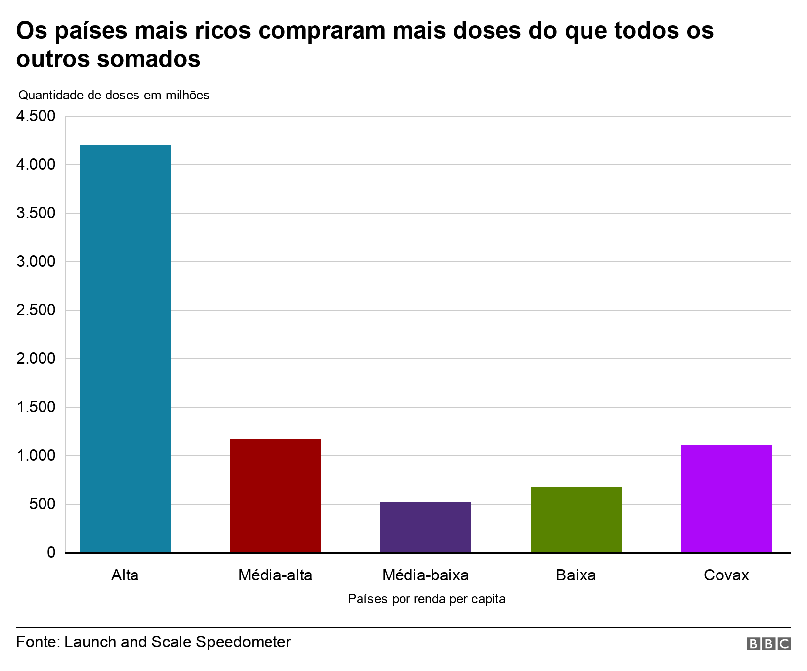 Os países ricos alavancaram seu poder de compra e investimentos no desenvolvimento de vacinas para conseguir um assento na primeira fila, e depois compraram a maioria das vacinas antes dos outros países. Os países de alta renda têm 16% da população mundial, mas atualmente respondem por 60% das doses de vacina que foram vendidas.