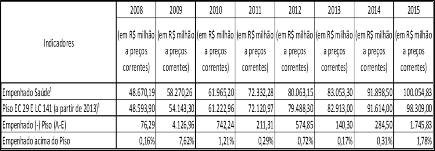 Ministério da Saúde – Ações e Serviços Públicos de Saúde: Empenho X PISO (2008-2015)