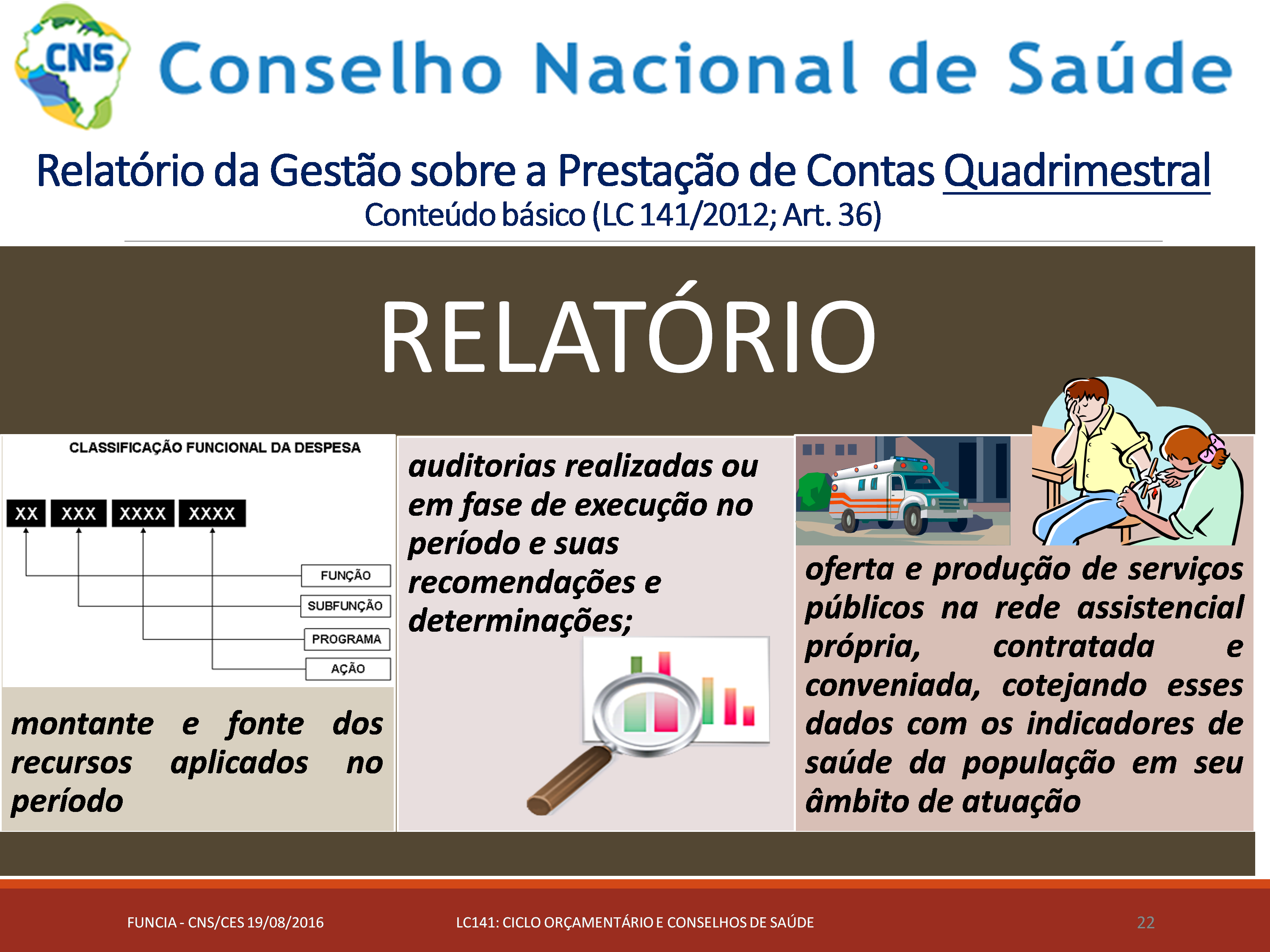 Após a análise do RAG 2016, o CMS emitirá parecer conclusivo (aprovação ou reprovação), considerando para esse fim o cumprimento ou não dos dispositivos da LC 141 quando da apreciação das contas anuais (art.41 e art.36, §§1º e 2º).