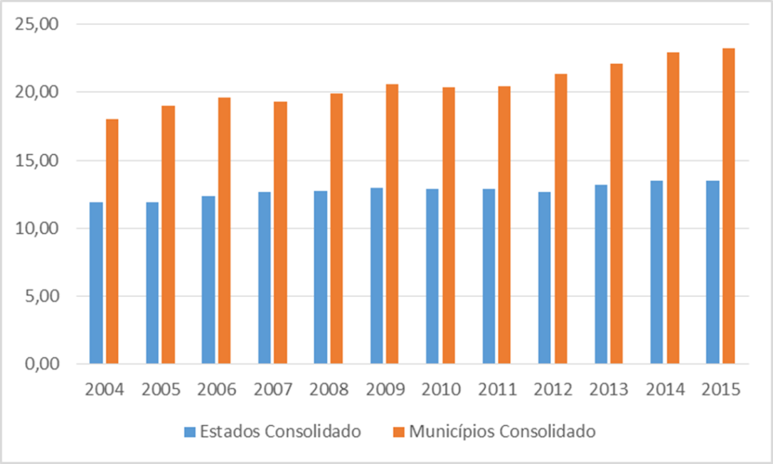 (4) Parâmetro atualizado pelo autor de crescimento real anual do PIB de -3,60% em 2016, conforme divulgado pelo IBGE (http://saladeimprensa.ibge.gov.br/noticias.html?view=noticia&id=1&idnoticia=3384&busca=1&t=pib-recua-3-6-2016-fecha-ano-r-trilhoes); parâmetro mantido estimado em 1,00% em 2017, conforme Ministro da Fazenda (http://www.brasil.gov.br/economia-e-emprego/2017/02/governo-preve-revisao-positiva-do-pib-em-marco-afirma-meirelles); PIB nominal a partir de 2018 estimado com base nas estimativas de crescimento real do PIB e do IPCA, utilizado como proxy do deflator implícito do PIB.