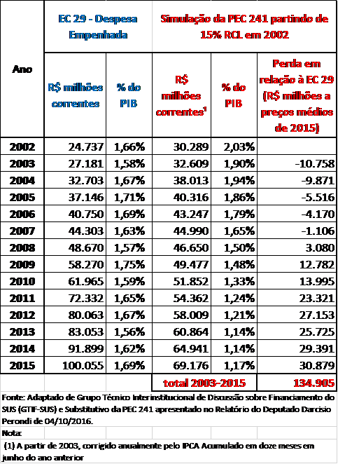 Fonte: Adaptado de estudo do Grupo Técnico Interinstitucional de Discussão sobre Financiamento do SUS (GTIF-SUS) e atualizado pelo autor.