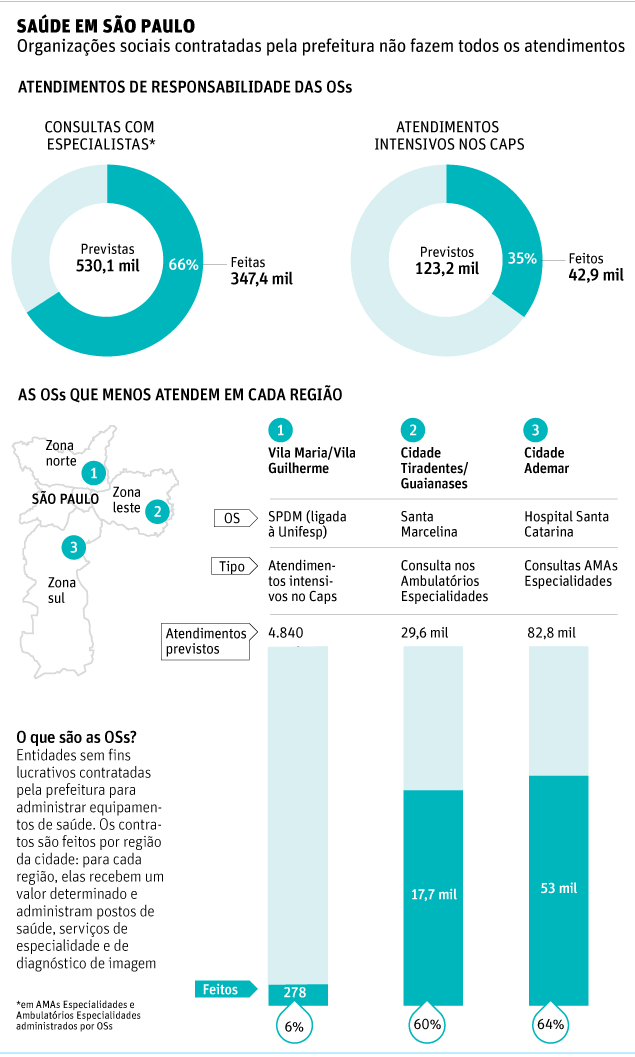 O dado consta de levantamento da Folha sobre prestações de contas feitas à prefeitura pelas OSs (Organizações Sociais), instituições sem fins lucrativos pagas para cuidar de unidades e complementar serviços de saúde.